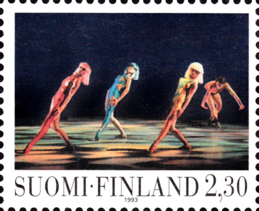 Auf einer Marke aus Finnland (MiNr 1230) zur Eröffnung des Opernhauses Helsinki wird eine Szene aus dem Ballett "Nachmittag eines Fauns" von Claude Debussy gezeigt.