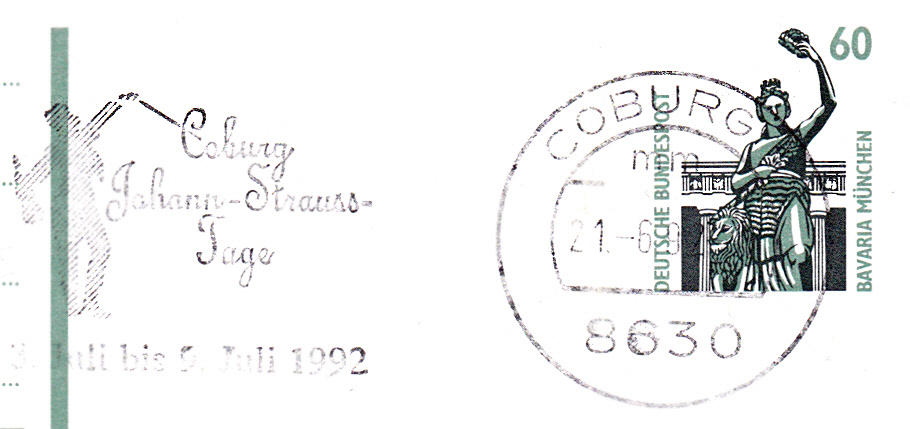 Bildpostkarte aus der Serie 2.92 mit Werbung für den Coburger Kultur-Sommer mit den Johann-Strauss-Tagen vom 3.-9.7.1993.