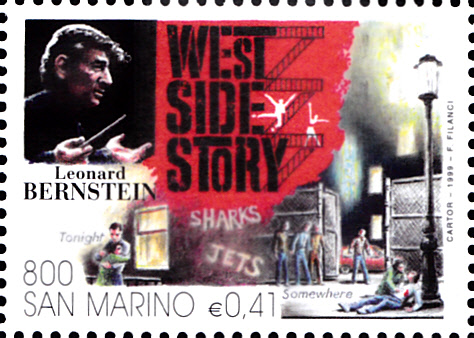 In San Marino ist in der Ausgabe "400 Jahre Oper" eine Marke (MiNr 182/) zu Ehren von Leonard Bernstein erschienen. Auf der Marke werden ein Porträt von Leonard Bernstein und eine Szene aus dem Musical "West Side Story" gezeigt.