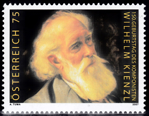 Wilhelm Kienzl (geb. 17. Jan. 1857 in Waizenkirchen, Oberösterreich; gest. 3. Okt. 1941 in Wien) war ein österreichischer Komponist. Neben Engelbert Humperdinck und Siegfried Wagner, den Komponisten von Märchenopern, ist Wilhelm Kienzl der wichtigste Opernschöpfer der romantischen Wagner-Nachfolge. Die österreichische Post hat anlässlich seines 150. Geburtstages diese Sonderbriefmarke (MiNr 2675) mit seinem Porträt aufgelegt.