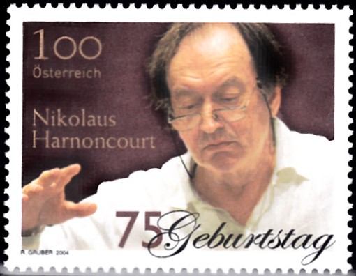 Zum 75. Geburtstag von Nikolaus Harnoncourt ist in Österreich eine Marke (MiNr 2504) erschienen.