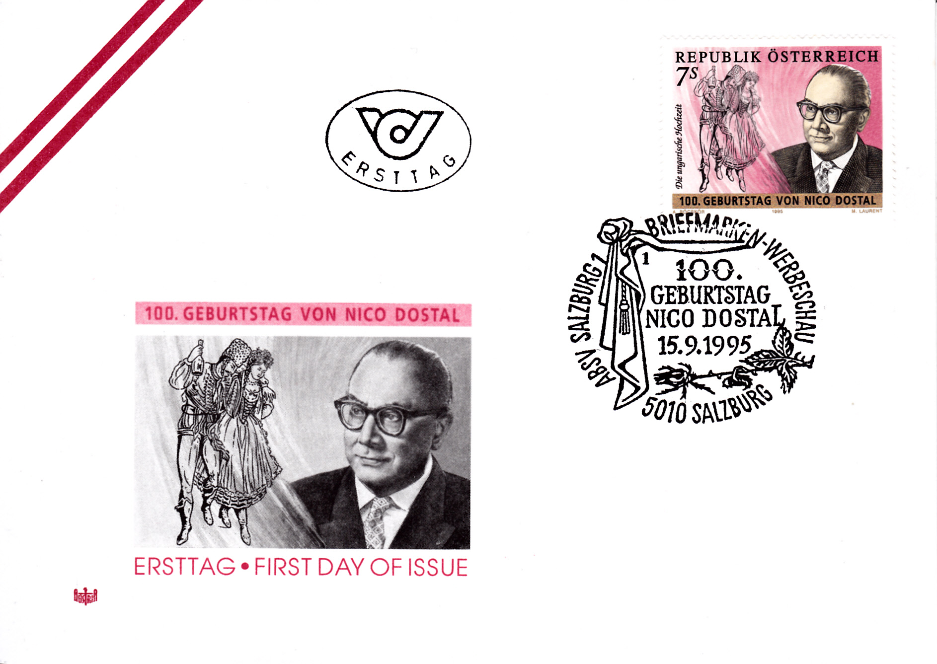 Zum 100. Geburtstag von Nico Dostal erschien in Österreich eine Marke (MiNr 2168) mit seinem Porträt und einer Szene aus "Die ungarische Hochzeit".