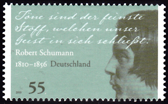 Zum 200. Geburtstag von Robert Schumann ist bei der Deutschen Post ein Marke (MiNr 2797) mit einem Porträt von Robert Schumann nach einer Lithographie (1847) von Eduard Kaiser.