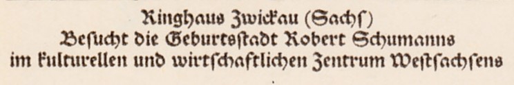 Zwickau (Sachsen) bringt sich auf dieser Bildpostkarte (MiNr P 236 Serie 172 Bild 1) als Geburtsstadt von Robert Schumann in Erinnerung.