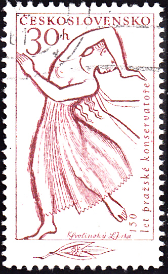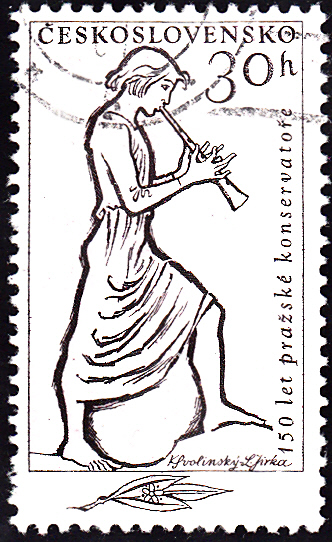 Aus dem Anlass "150 Jahre Musikkonservatorium Prag" ist in einer Serie in der Tschechoslowakei diese Marke (MiNr 1265) mit einem Flötenspieler erschienen.