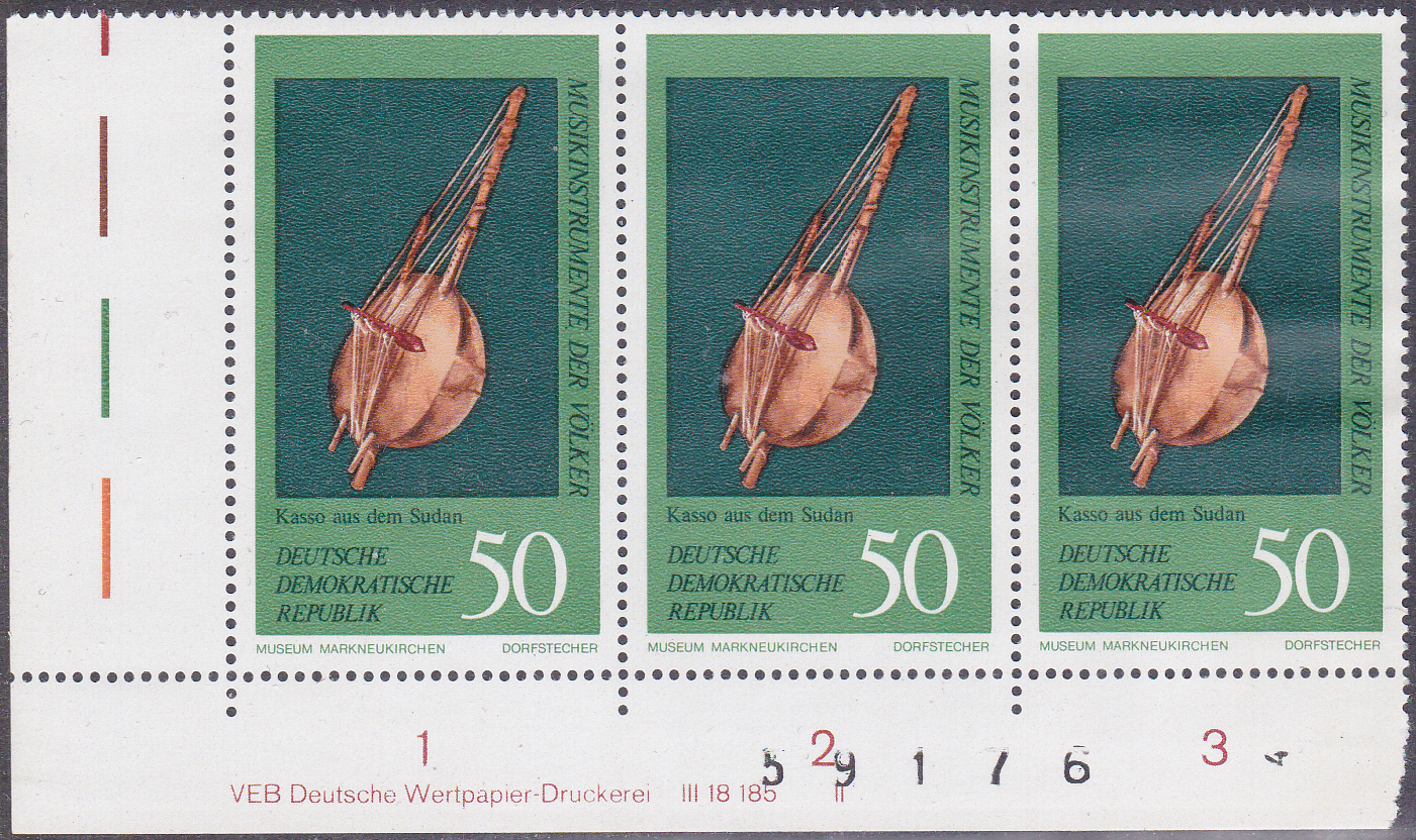 Auf einer Marke aus der DDR (MiNr 1713) ist ein Musikinstrument mit dem Namen "Kasso" abgebildet. Es gehört zur Kategorie der Harfen-Lauteninstrument und kommt aus dem Sudan.