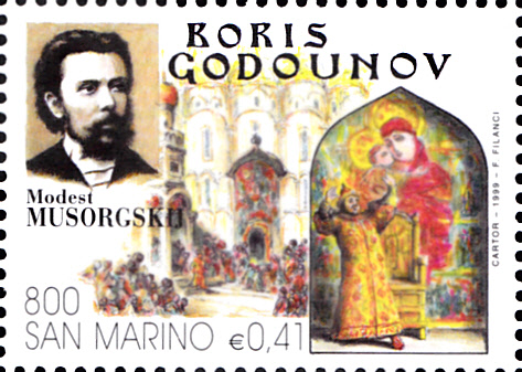 In San Marino ist in der Ausgabe "400 Jahre Oper" eine Marke (MiNr 1822) zu Ehren von Modest Mussorgski erschienen. Auf der Marke werden ein Porträt von Modest Mussorgski und zwei Szenen aus der Oper "Boris Godunow" gezeigt.