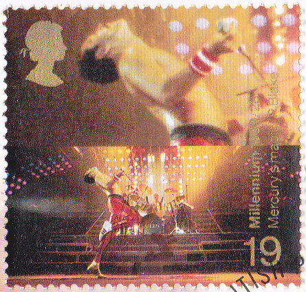 In einer Ausgabenserie zur Jahrtausendwende erschien zum Thema "Unterhaltungswesen" in Großbritannien eine Marke (MiNr 1809) mit Freddie Mercury.