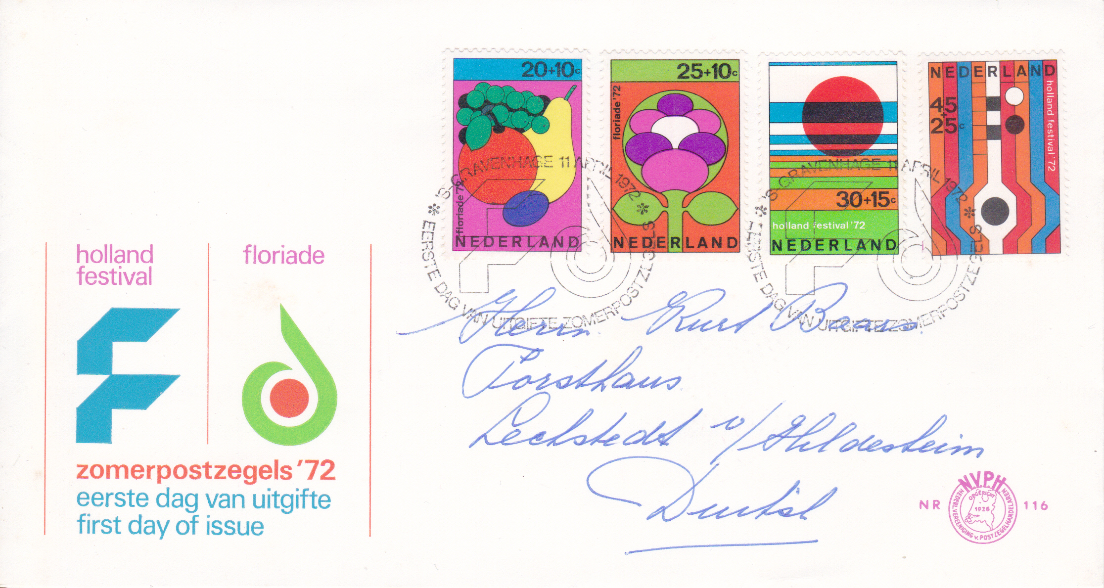 FDC mit den vier "Sommermarken" 1972 aus den Niederlande.