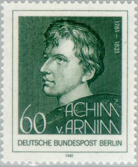 Achim von Arnim wurde auf der Sondermarke Berlin MiNr. 637 gewürdigt und passt somit in eine thematische Sammlung "Geigen":
