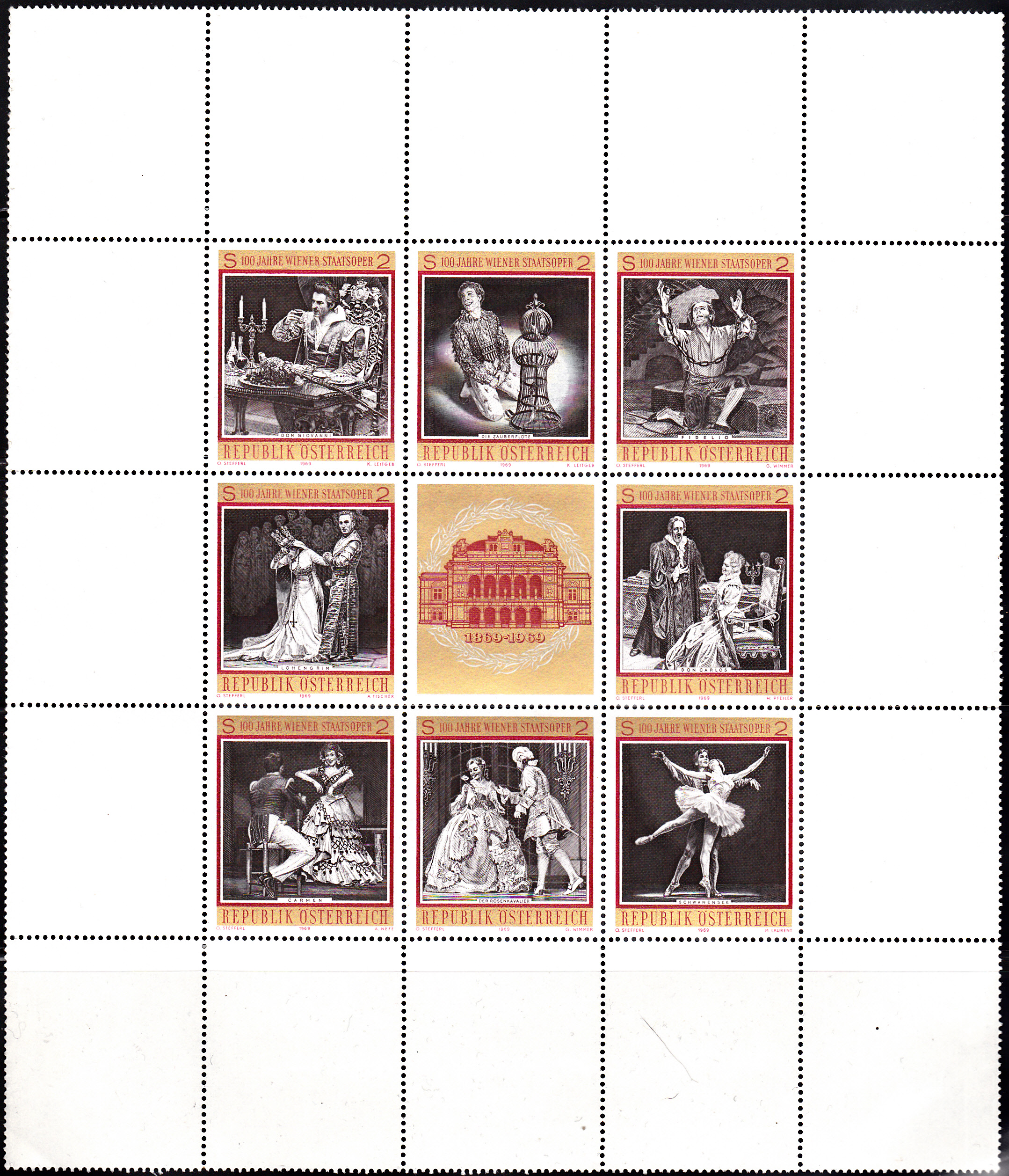 Die Marke stammt aus dem Kleinbogen " 100 Jahre Wiener Staatsoper".