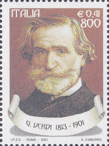 Zum 100. Todestag von Giuseppe Verdi verausgabte San Marino eine Markenserie. Jede Marke bildet jeweils ein Porträt von Verdi und eine Szene aus einer Oper ab.