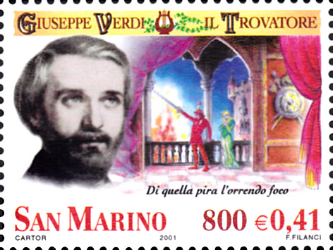 Diese Marke aus Österreich (MiNr 1298) zeigt eine Szene aus der Oper "Don Carlos" von Giuseppe Verdi.