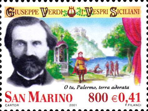 Diese Marke (MiNr 1943) zeigt eine Szene aus der Oper "Die sizilianische Vesper", die am 13. Juni 1855 in Paris im Théatre Impérial uraufgeführt wurde.