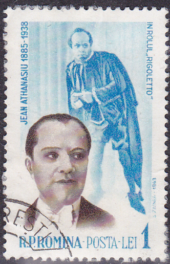 Auf einer Marke aus Rumänien (MiNr 2235) ist ein Porträt von Jean Athanasiu (1885-1938, rumänischer Opernsänger) und in der Rolle als "Rigoletto" abgebildet.