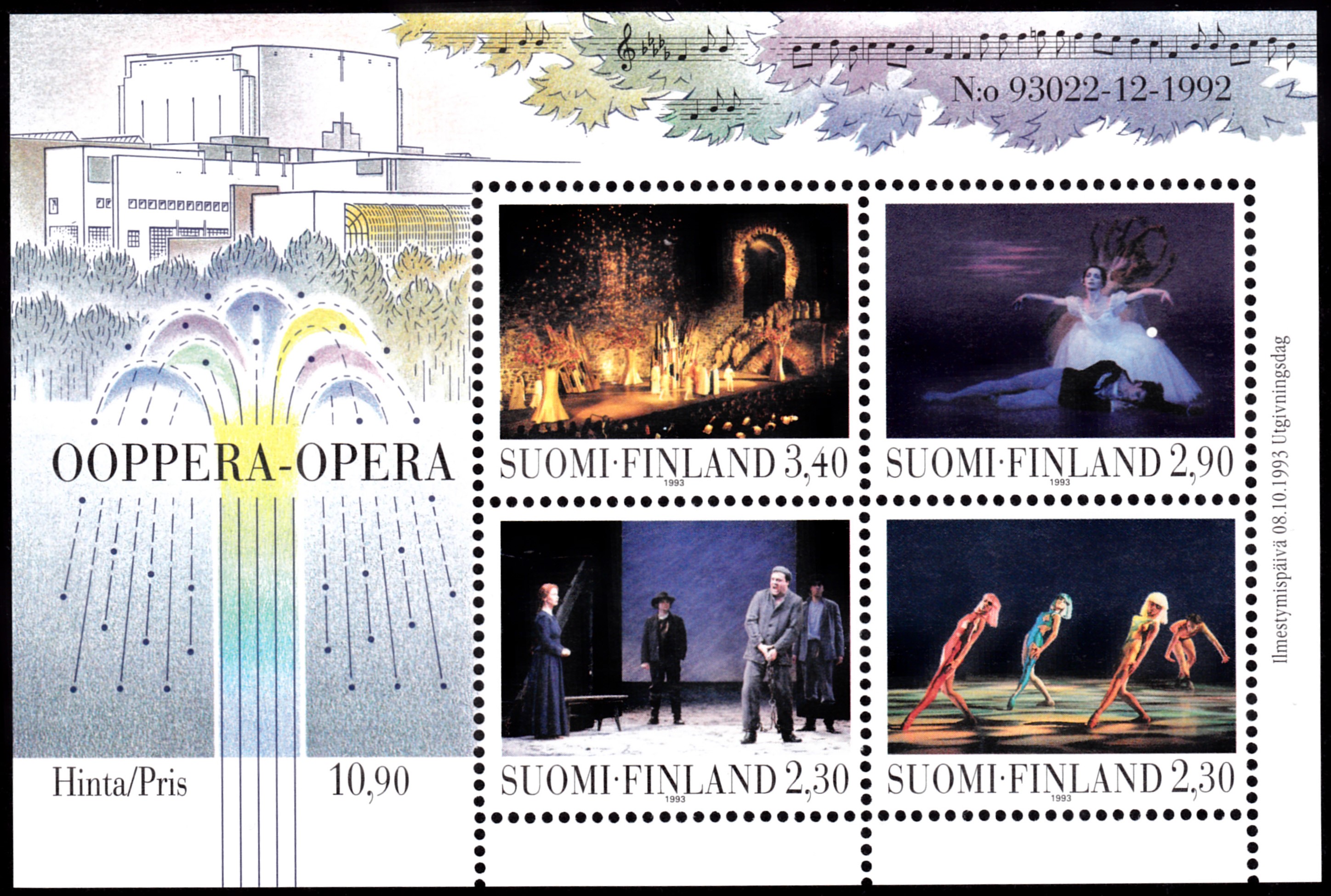Auf einer Marke aus Finnland (MiNr 1232) zur Eröffnung des Opernhauses Helsinki wird eine Szene aus der Oper "Die Zauberflöte" von Wolfgang Amadeus Mozart gezeigt.