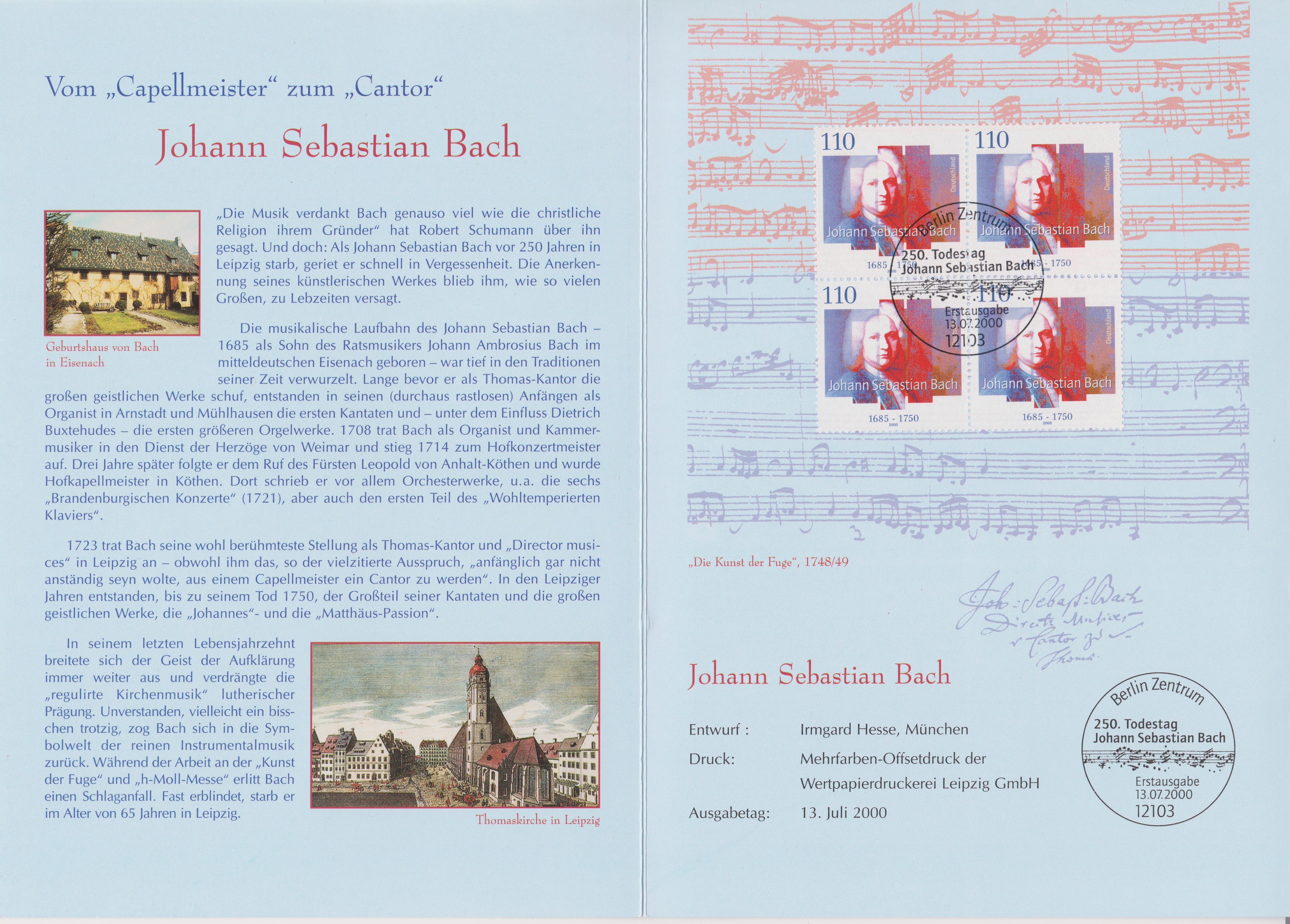 Zum 300. Geburtstag von Johann Sebastian Bach ist in Polen ein Block (MiNr Block 97 I mit Marke MiNr 3012) erschienen.
