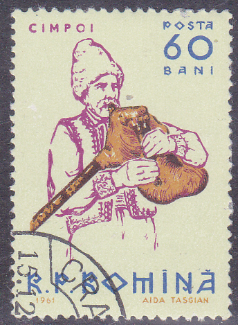 Einen Dudelsackspieler zeigt auch diese Marke aus Rumänien (MiNr 2001).