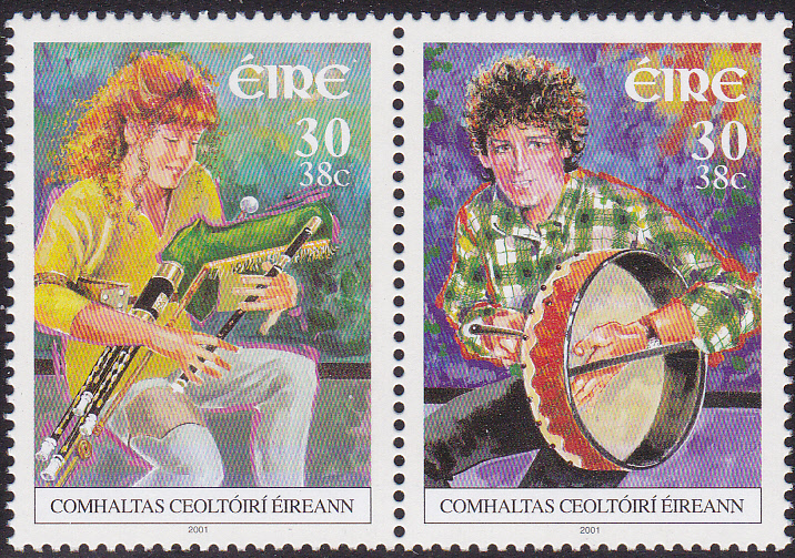 Zum Jubiläum "50 Jahre Gesellschaft zur Erhaltung der irischen Musik " ist in Irland diese Marke (MiNr 1317) mit einer Jugendlichen mit einem Dudelsack erschienen.