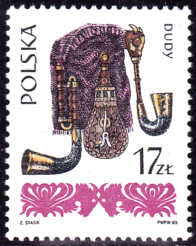 In einer Serie "Alte Musikinstrumente" ist in Polen diese Marke (MiNr 2903) mit einem Dudelsack aus Posen (Poznań) erschienen.
