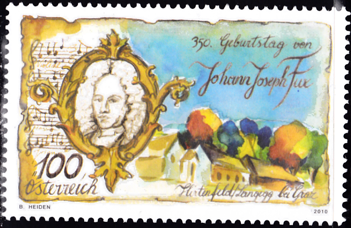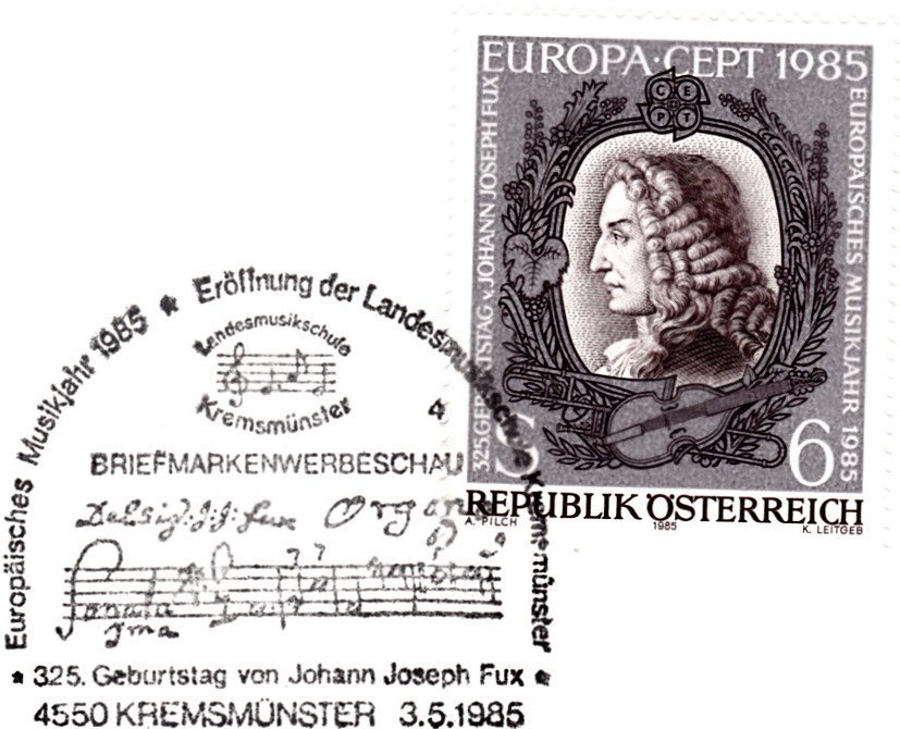 Die Europamarke 1985 aus Österreich (MiNr 1711) zeigt ein Porträt von Johann Joseph Fux.