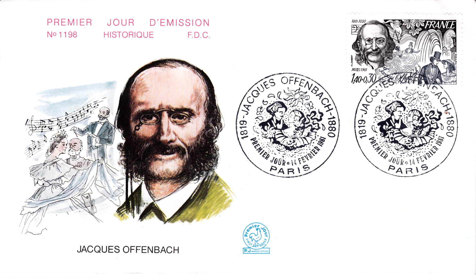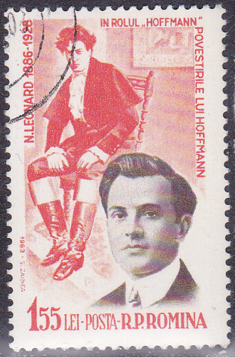 Auf einer Marke aus Rumänien (MiNr 2237) sehen wir ein Porträt von Nicolae Leonard (1886-1928, rumänischer Opernsänger) und ihn in einer Rolle aus "Hoffmanns Erzählungen" von Jacques Offenbach.