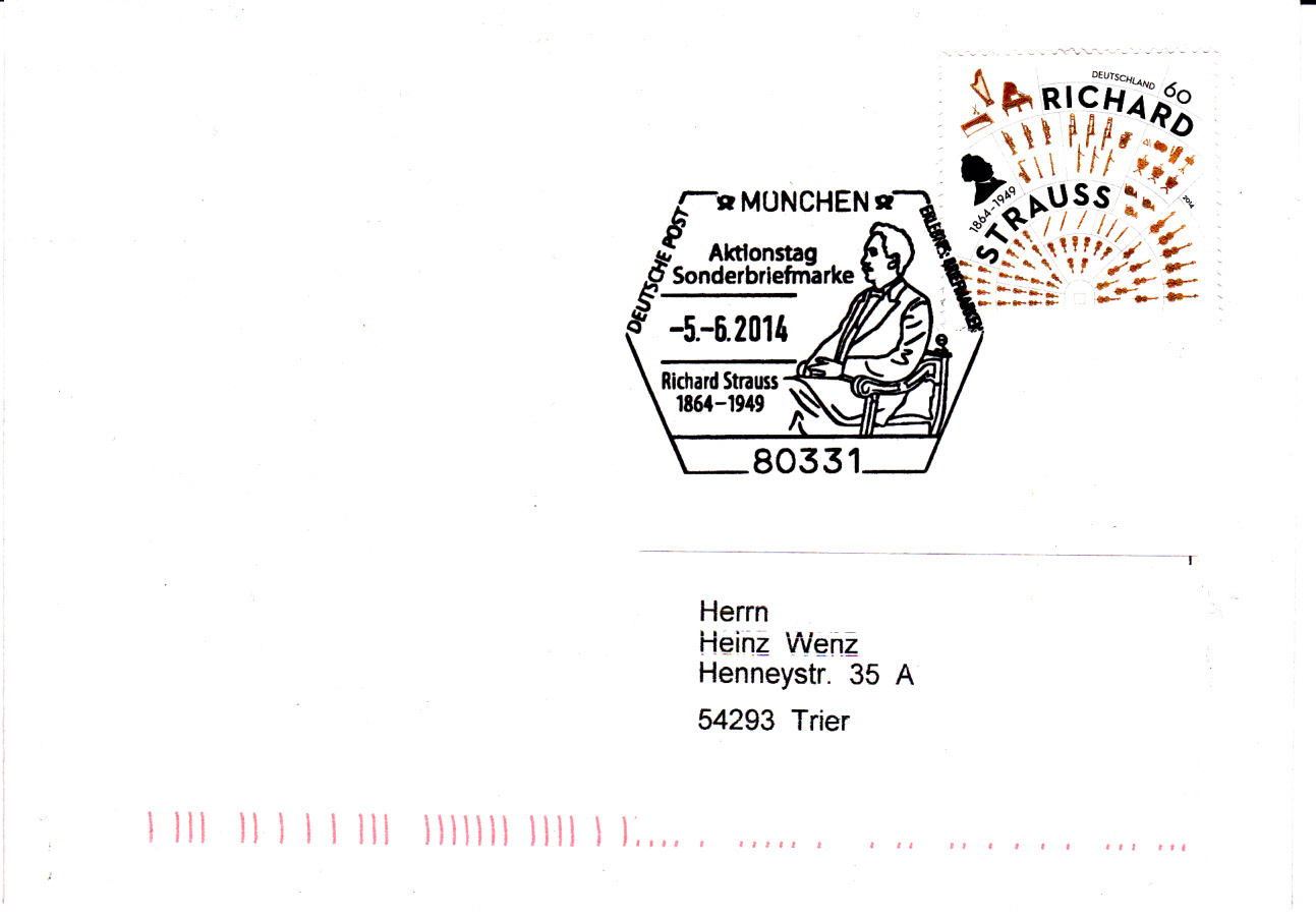 In Berlin erschien am 18.9.1954 diese Marke zum 5.Todestag von Richard Strauss (MiNr 124):