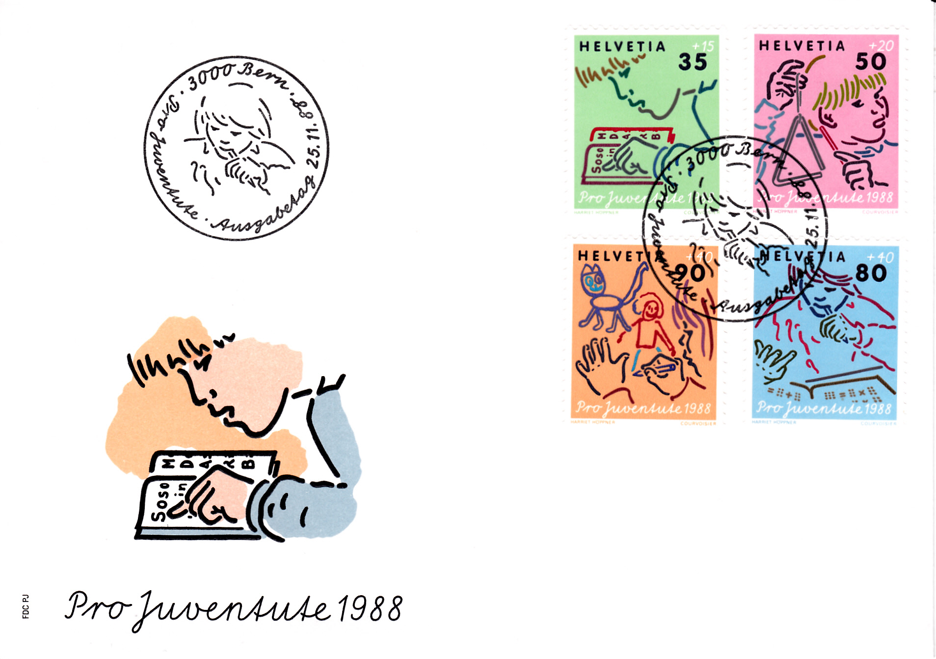 FDC mit dieser Marke aus der Serie "Pro Juventute" 1988 der Schweiz (MiNr 1382).