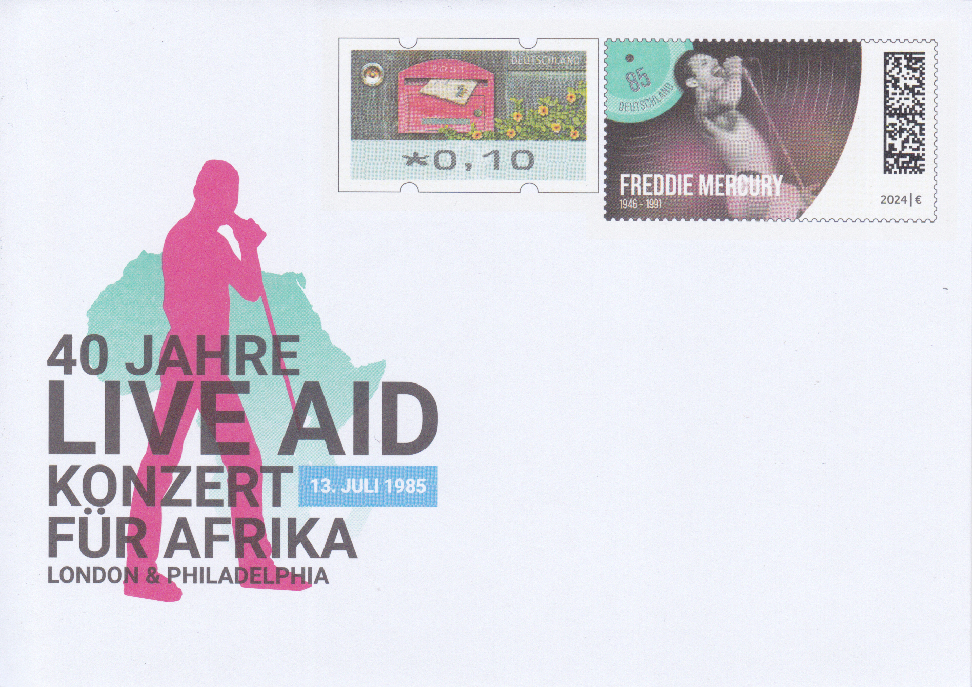 Auf einer Marke der Deutschen Post (MiNr 3851) aus der Serie "Legenden der Pop- und Rockmusik" ist Freddie Mercury abgebildet. Hier zeige ich ein Eckrandstück mit EAN-Codierung.