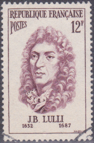 Eine Marke aus Frankreich (MiNr 1111) zeigt ein Porträt von Jean-Baptiste Lully.