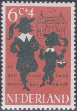 Auf der Marke zu 6+4 Cent (MiNr 809) zeigt ein Bild zum Kinderlied "In Den Haag, da wohnt ein Graf".