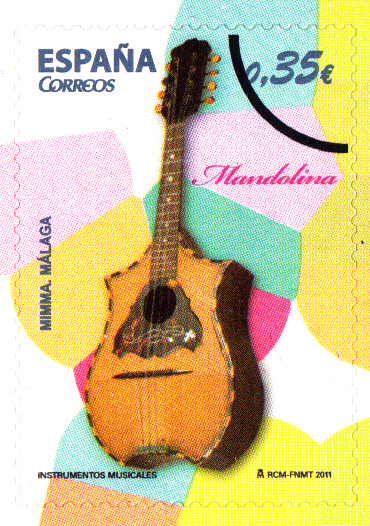 Die auf dieser Marke aus Spanien MiNr 4580) gezeigte Mandoline gehört sicherlich zur zweiten Bauart. Die gezeigte Marke ist eine Mustermarke.