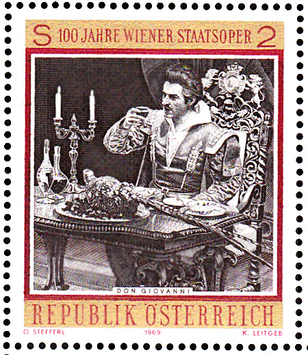 Diese Marke aus Österreich (MiNr 1294) zeigt eine Szene aus "Don Giovanni".