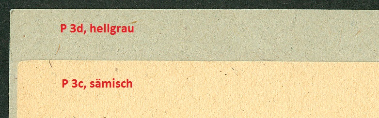 Die d-Variante der P 3 fällt beim Betrachten allein durch seinen grauen Karton auf und lässt sich somit leicht von den anderen Kartonfarben unterscheiden. Wobei Grautöne des glatten Kartons vorkommen, im MICHEL jedoch nicht katalogisiert werden.