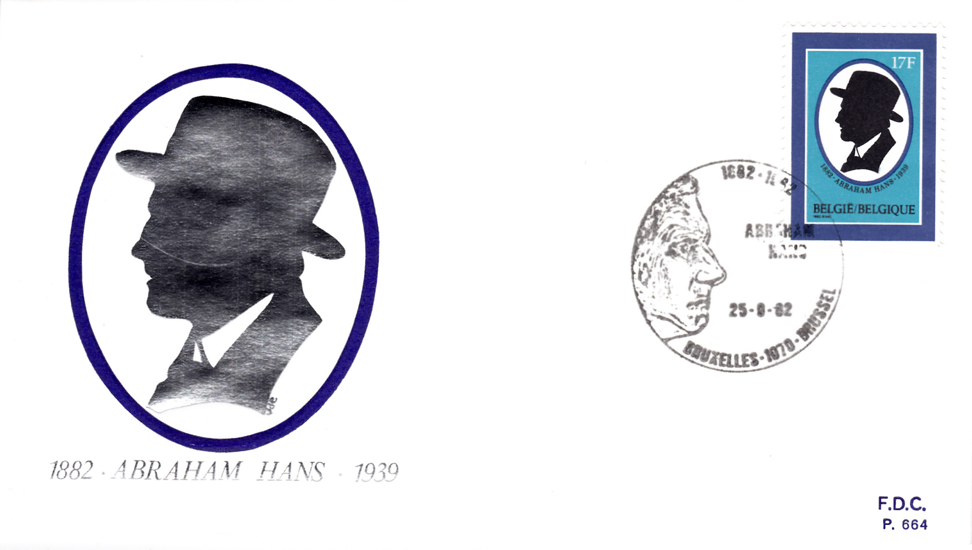 Zum 100. Geburtstag von Abraham Hans erschien in Belgien diese Marke (MiNr 2116) mit seinem Porträt als Scherenschnitt.