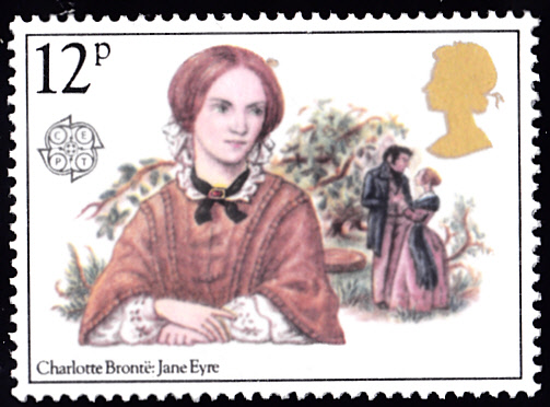 Auf der Europamarke 1980 zu 12 Pence aus Großbritannien (MiNr 841) zeigt ein Porträt von Charlotte Brontë und eine Szene aus "Jane Eyre".