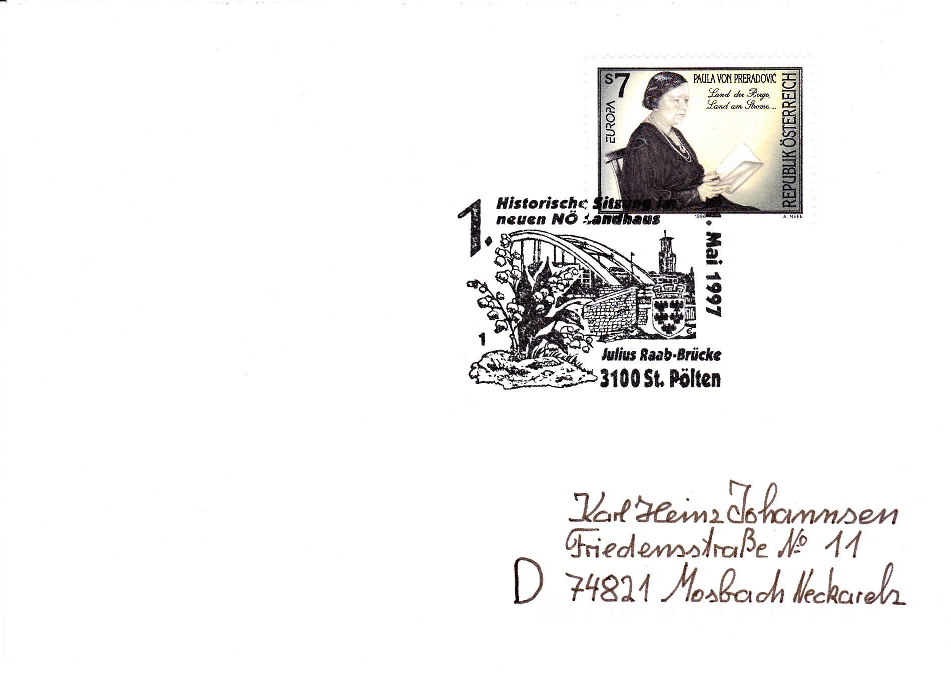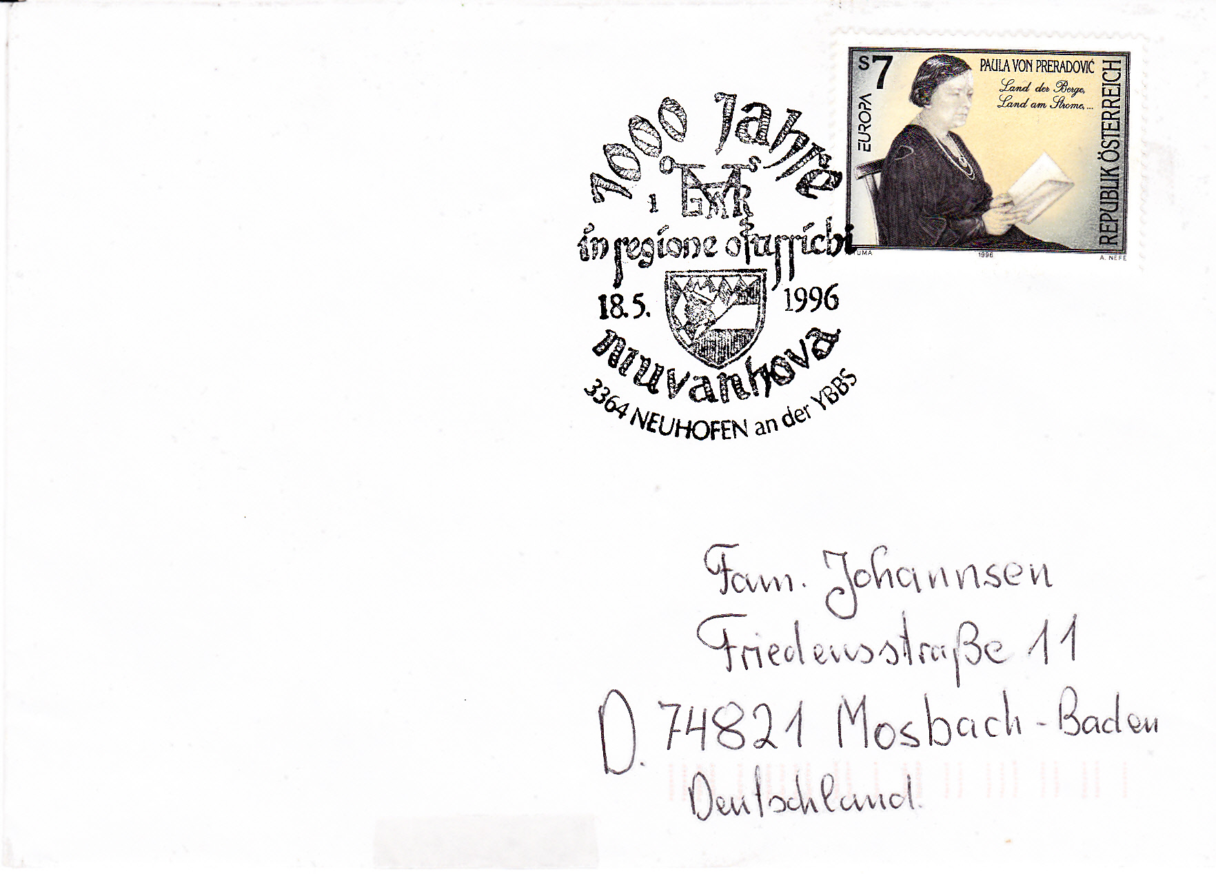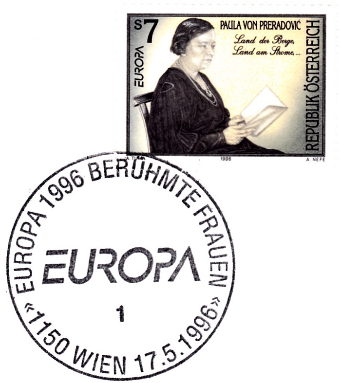 Auf der Europamarke 1996 aus Österreich (MiNr 2189) wird ein Porträt von Paula Preradović gezeigt.