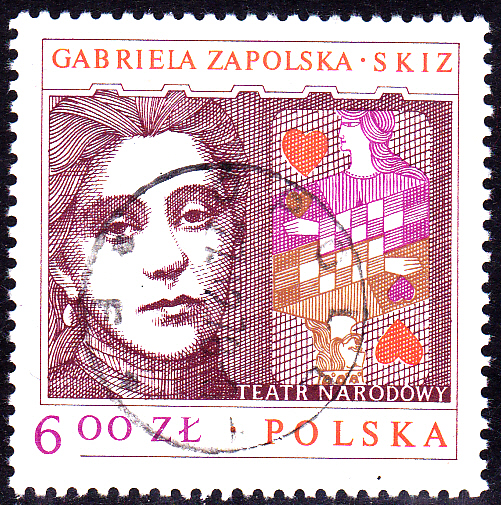 In einer Serie "Meisterwerke polnischer Dramaturgie" erschien in Polen diese Marke (MiNr 2596) mit einem Porträt von Gabriela Zapolska und einer Szene aus dem Drama "Skiz".