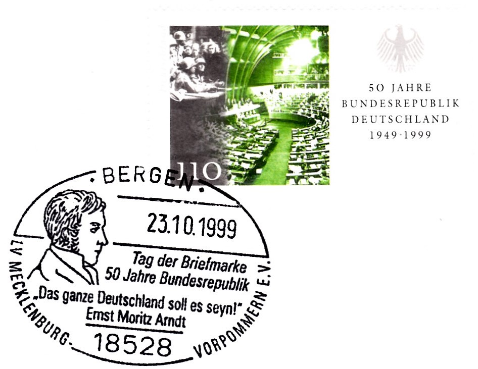 Ernst Moritz Arndt (* 26. Dezember 1769 in Groß Schoritz auf Rügen (von 1648 bis 1815 Teil Schwedens); † 29. Januar 1860 in Bonn, Preußen) war ein deutscher Schriftsteller, Historiker, Freiheitskämpfer und Abgeordneter der Frankfurter Nationalversammlung.
