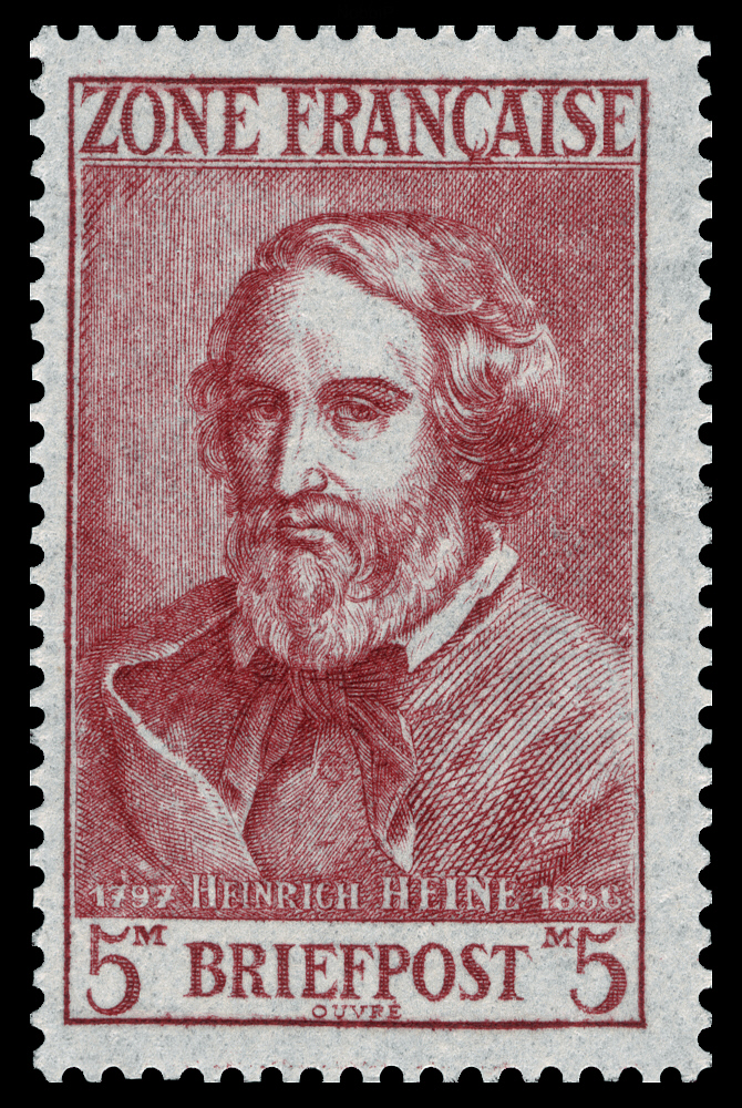 Zum 200. Geburtstag von Heinrich Heine erschien bei der Deutschen Post eine Marke (MiNr 1962) mit einem Porträt von ihm nach einer Zeichnung von Wilhelm Hensel (1794-1861).