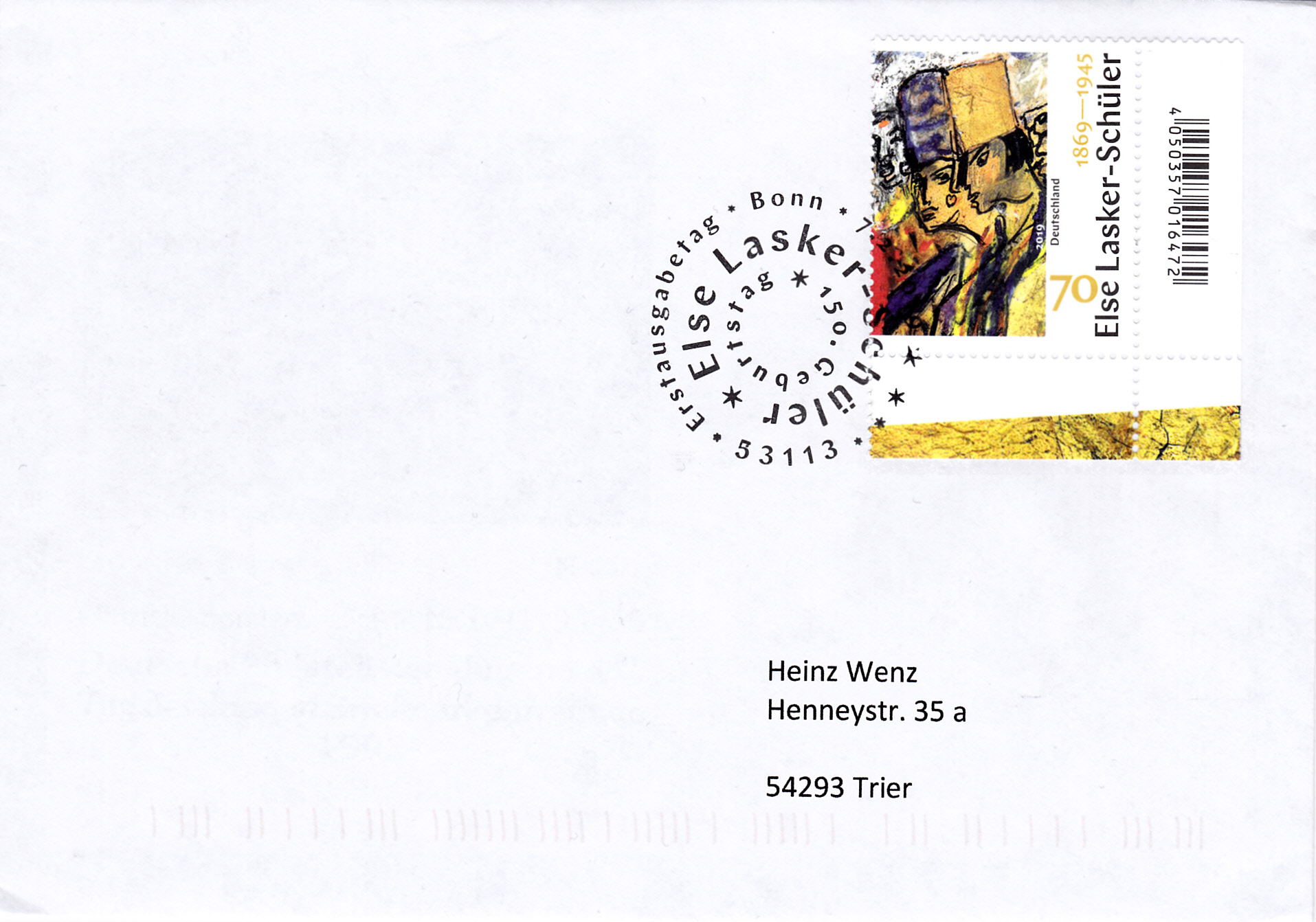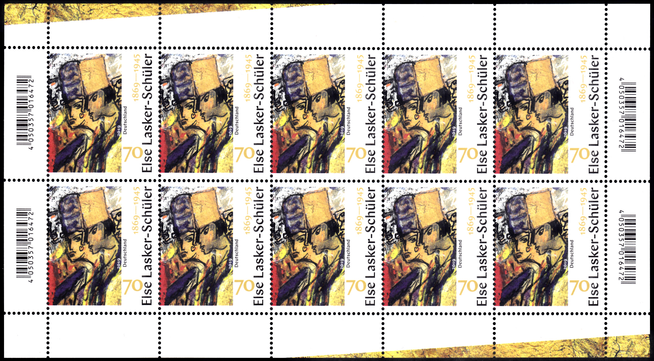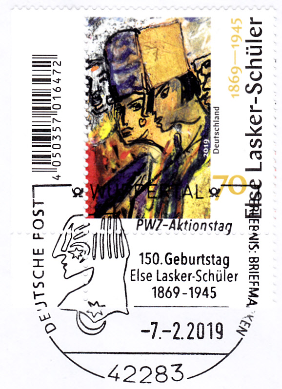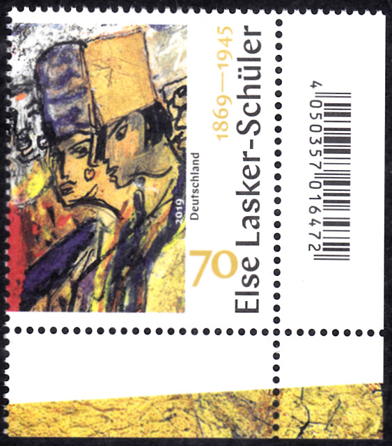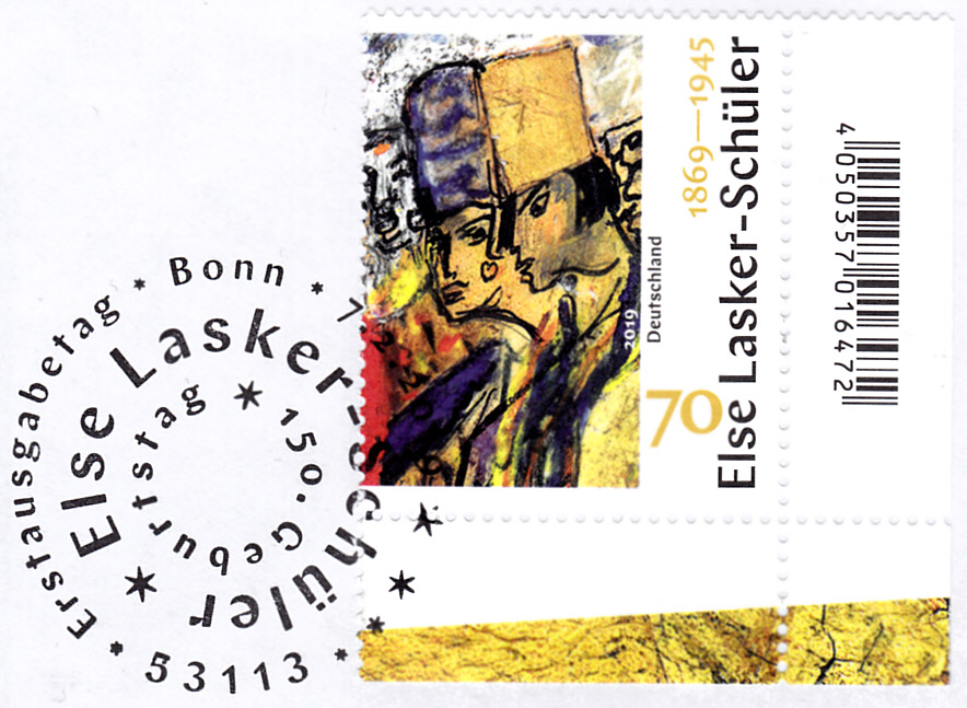 In einer Serie "Bedeutende deutsche Frauen" wurden 1975 bei der Deutschen Bundespost Schriftstellerinnen gewürdigt. Eine Marke (MiNr 828) zeigt Else Lasker-Schüler.