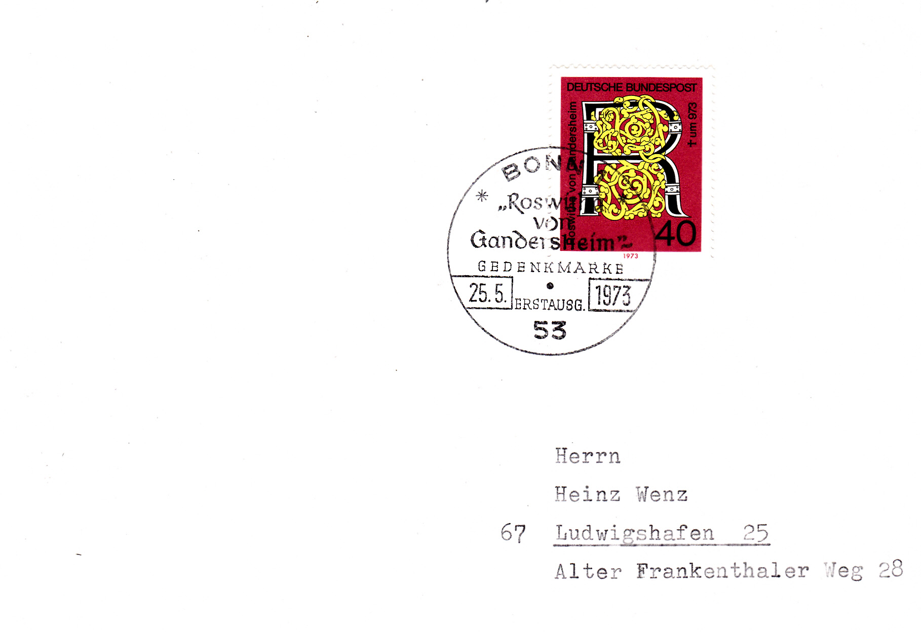 Zu ihrem 1000. Todestag erschien diese Marke (MiNr 770) mit einer Romanisch verzierten Letter "R".