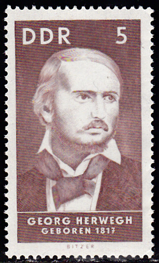 In der DDR erschien 1967 in einer Serie "Berühmte Persönlichkeiten" eine Marke (MiNr 1293) mit einem Porträt von Georg Herwegh.