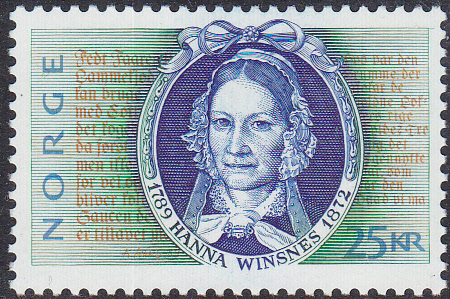 Zum 200. Geburtstag von Hanna Winsnes erschien in Norwegen 1989 eine Marke (MiNr 1032) mit ihrem Porträt.