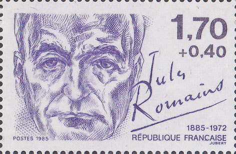 In Frankreich erschien 1985 in einer Serie "Bedeutende Persönlichkeiten" eine Marke für Jules Romains (MiNr 2484). Die Marke gibt es in zwei Zähnungen: A = gez. K 13, C = gez. K 15:15 1/2.