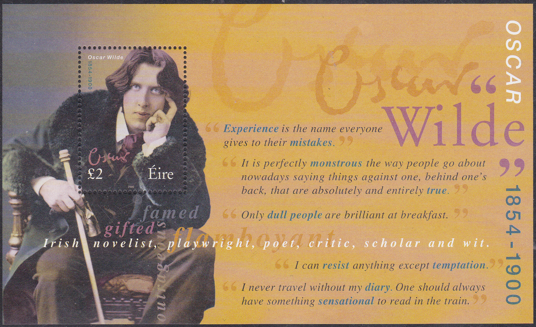 Zum 100. Todestag von Oscar Wilde erschien in Irland in einer Serie diese Marke (MiNr 1225) mit seinem Bild.