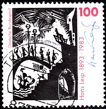 Zu seinem 100. Geburtstag erschien eine Marke (MiNr 1694) mit dem Holzschnitt "Die Brücke Tuledu" von H. Leip.