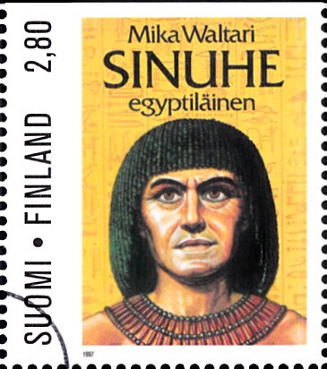 In einer Serie "100 Jahre Finnischer Schriftstellerverband" erschien in Finnland diese Marke (MiNr 1404) mit der Abbildung des Titelbildes des berühmtesten Romans "Sinuhe der Ägypter" von Mika Waltari. Sinuhe der Ägypter ist ein historischer Roman aus dem Jahr 1945.