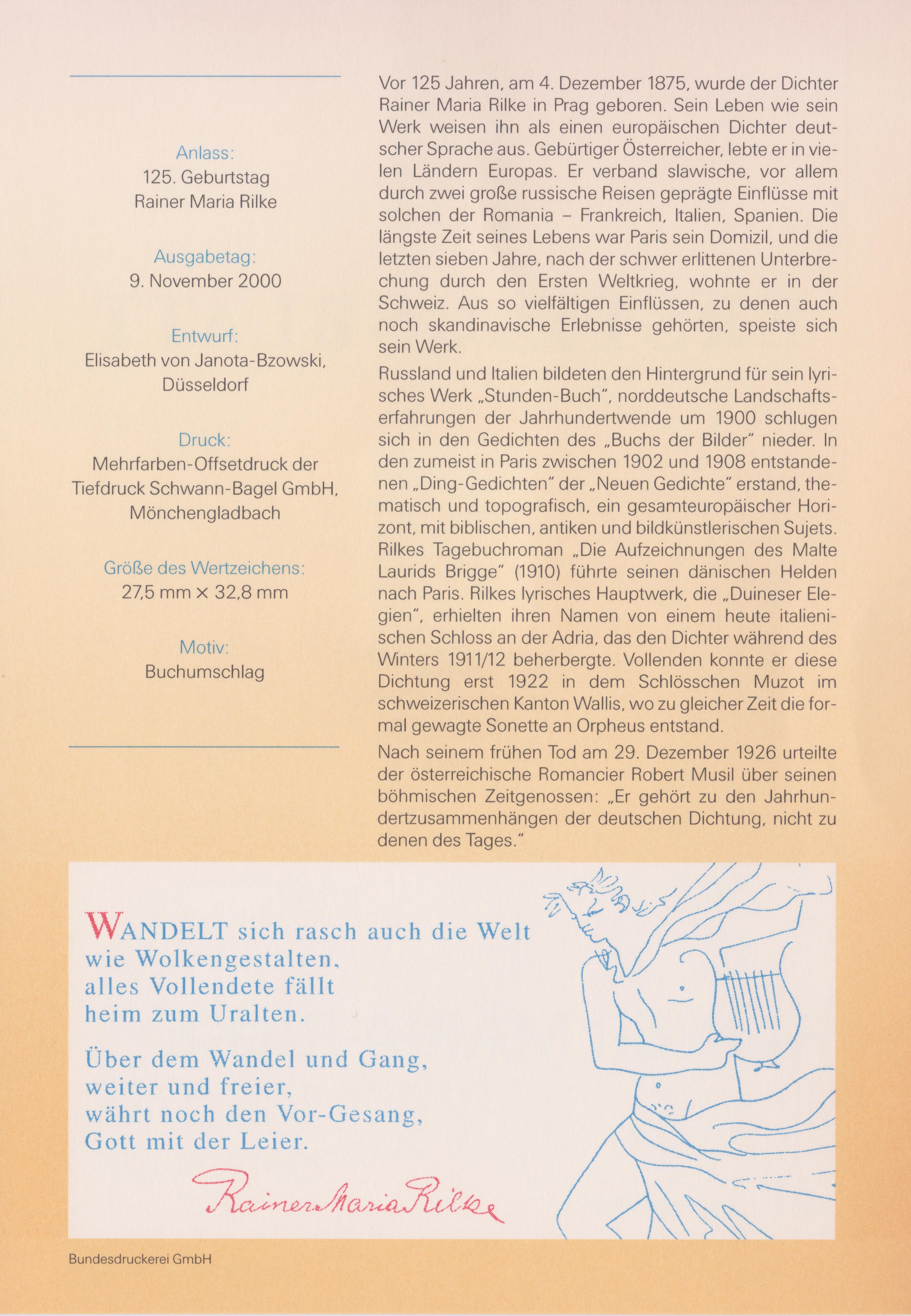 In Österreich erschien 1976 zum 50. Todestag von Rainer Maria Rilke eine Marke (MiNr 1539) mit einem Porträt von ihm.