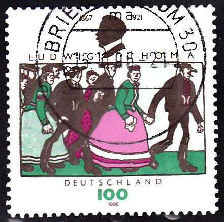 Zu seinem 75. Todestag erschien bei der Deutschen Post am 18.7.1996 eine Sondermarke (MiNr 1870) mit einem Scherenschnitt seines Kopfbildes und der Zeichnung "Hochzeit" von Bruno Paul.